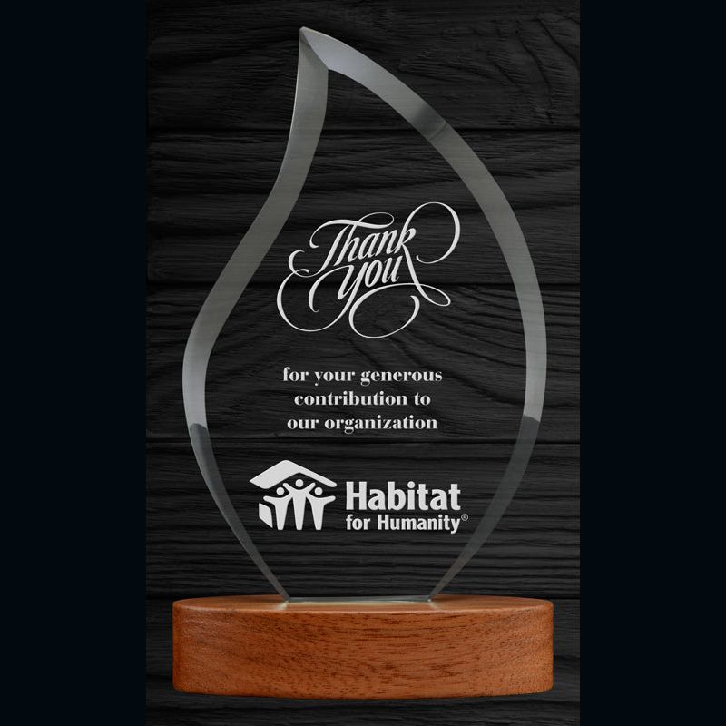 The Wooden Base Waterdrop Glass Award is a stunning tribute to exceptional accomplishments and remarkable achievements, making it a standout recognition piece. Its unique waterdrop shape and solid wood base add an element of sophistication and elegance, making it an ideal choice for corporate ceremonies, academic achievements, and sports competitions. Crafted with meticulous attention to detail, this glass award showcases unparalleled design and craftsmanship, making it a cherished symbol of distinction and excellence.