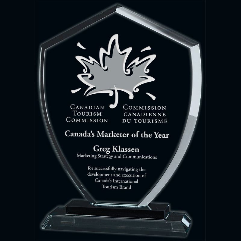 Measuring 4½" x 6¼", this trophy is a remarkable symbol of resilience and triumph. Its shield-shaped design is perfect for honouring courageous individuals, outstanding performances, and notable milestones. Whether for corporate awards, personal achievements, or competitive recognitions, this glass trophy exudes elegance and sophistication.