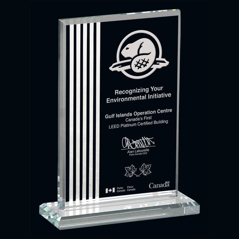The Striped Elegance Glass Trophy is designed to captivate and inspire, serving as a timeless reminder of extraordinary accomplishments and milestones. Whether it's recognizing exceptional business achievements, academic excellence, or sporting triumphs, this glass trophy is sure to leave a lasting impression.