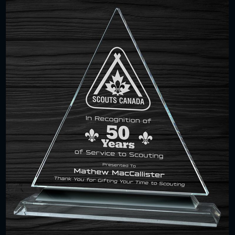In summary, the Triangular Pinnacle Glass Award is an exceptional choice for recognizing and honouring remarkable accomplishments. Its exquisite design and customizable features make it a standout piece that will be cherished by recipients for years to come.